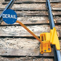 - Emergency stopping devices designed to guide the wheels of a freight car or locomotive off the rails.